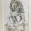 Grafika przedstawiająca małą dziewczynkę bawiąca się w piasku Sonia. Jest to grafika wykonana techniką warsztatową, a dokładniej wspomniana metoda to technika wklęsłodruku – jedna z najstarszych technik graficznych. Grafika  Kierat Stadnik Agnieszka.