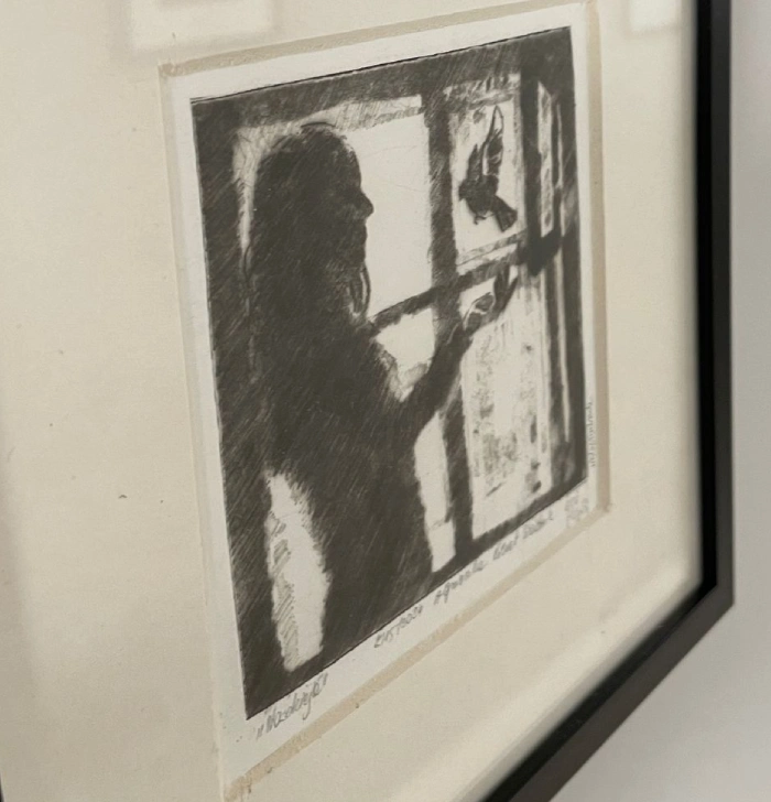 „Nadzieja” to unikatowa kolekcja grafiki tradycyjnej. Grafika warsztatowa – jedna z najstarszych technik graficznych. Grafika przedstawia kobietę przy oknie, do której podlatuje ptak. Wydrukowane zostały dotychczas w 1 nakładzie, który liczy 15 odbitek, przez co grafika ta jest unikatowa i niepowtarzalna. Jej niepowtarzalność polega również na tym, że każda z odbitek ma nieco inne odcienie, inną kolorystykę, czasem różniące się pewne detale, dlatego nie ma dwóch takich samych, a ich ilość jest limitowana. Kolorystyka – różne odcienie brązu, czerni, dodatkowo magenta. Grafiki odbite zostały na papierze o kolorze lekko beżowym i białym. Można zakupić jedną z prezentowanych tu prac lub zamówić nową odbitkę. Aby zamówić odbitkę, proszę o kontakt telefoniczny – kontakt.